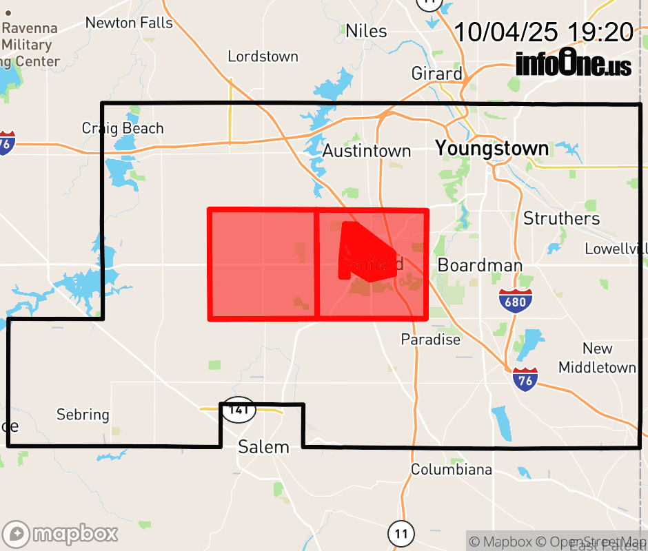 Canceled 10/4/25 7:40 PM Mahoning County has 3 power outages affecting 1465 customers. Ohio Edison 1465 without power Canfield: Customers affected: 759 (16%) Estimated repair: Sat 10:00 PM Canfield Township: Customers affected: 620 (16%) Estimated repair: Sat 9:00 PM Ellsworth Township: Customers affected: 81 (9%) Estimated repair: Sat 9:00 PM Youngstown: Customers affected: 19 (< 1%) Estimated repair: Sat 9:00 PM Boardman Township: Customers affected: 19 (< 1%) Estimated repair: Sat 9:00 PM Austintown Township: Customers affected: 19 (< 1%) Estimated repair: Sat 9:00 PM Updated: Sat 10/4/25 7:20 PM EDT ![]() Updated: Sat 10/4/25 7:20 PM EDT |