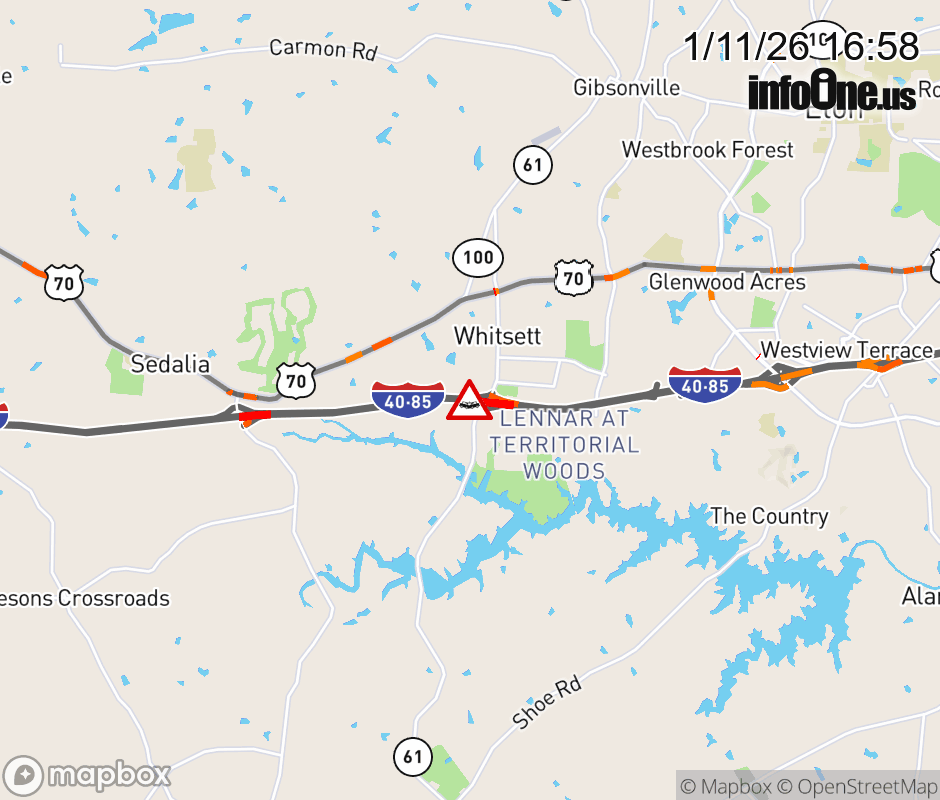 The right shoulder is closed near Exit 138 (NC 61). Updated: Sun 1/11/26 4:58 PM EST ![]() Updated: Sun 1/11/26 4:58 PM EST |