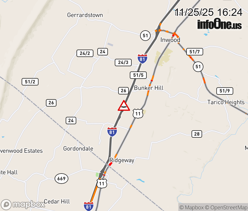 Vehicle Crash on I-81S at Mile Marker 2.1. Updated: Tue 11/25/25 4:24 PM EST ![]() Updated: Tue 11/25/25 4:24 PM EST |
