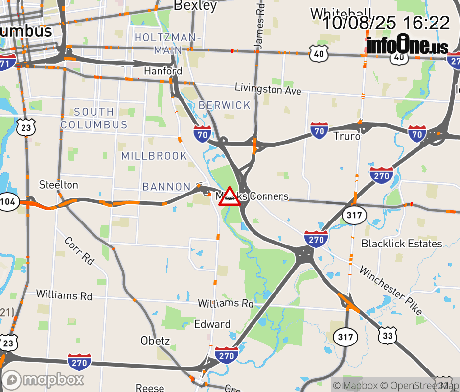 Expect lane closures on SR-104 East at US-33 East, due to a crash. ![]() |