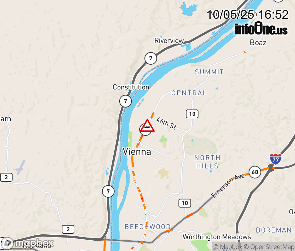 In Wood County there is a Vehicle Crash on WV-14S at Mile Marker 18.38. Grand Central Ave & 40th St in Vienna. ![]() |