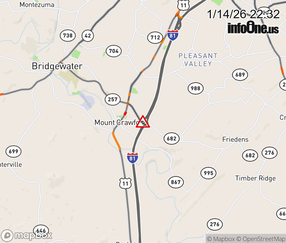 On VA-257 East in the County of Rockingham, in the vicinity of the ramp from and to I-81S, motorists can expect delays due to other security/police activity. Updated: Wed 1/14/26 10:32 PM EST ![]() Updated: Wed 1/14/26 10:32 PM EST |