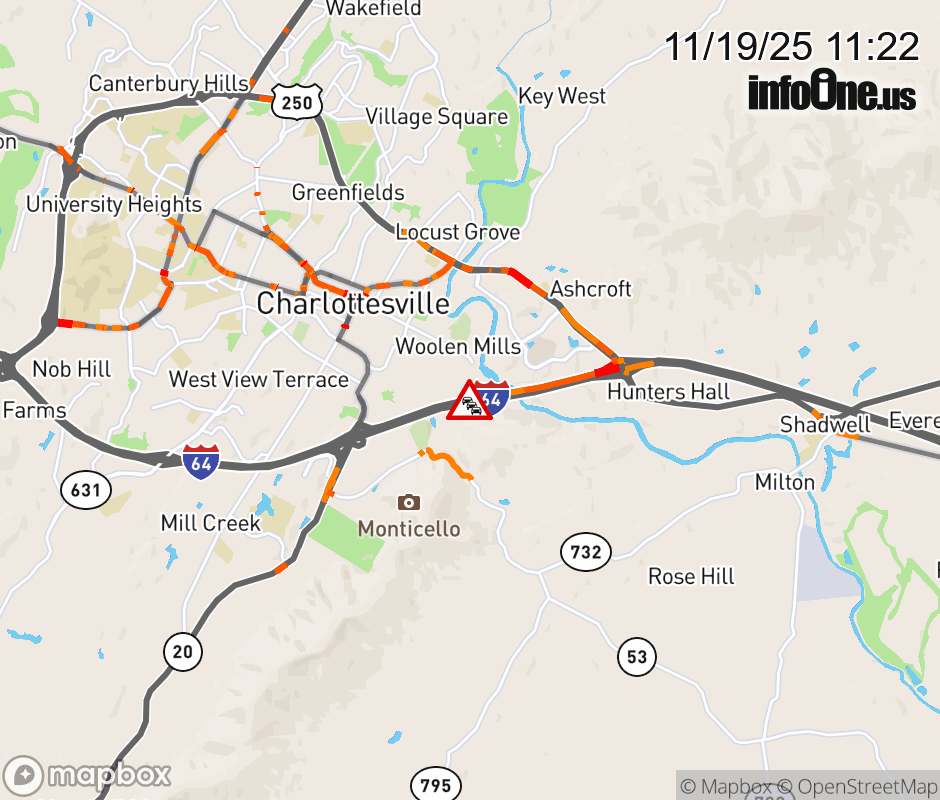 On I-64 West at mile marker 123 in the County of Albemarle, motorists can expect delays due to congestion. Updated: Wed 11/19/25 11:22 AM EST ![]() Updated: Wed 11/19/25 11:22 AM EST |