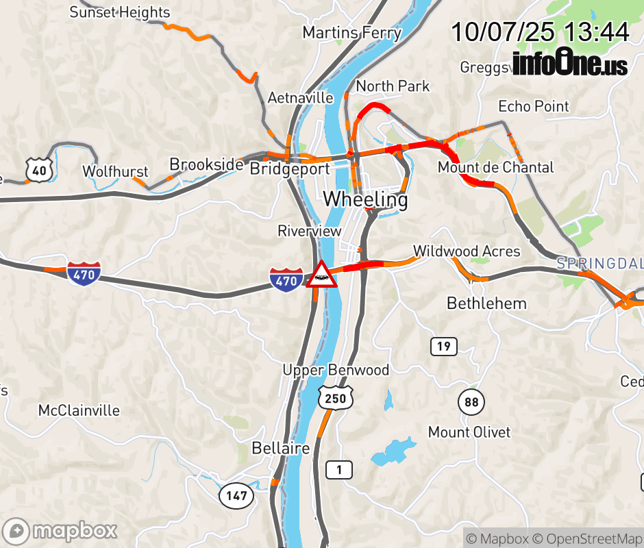 The left lane is blocked on I-470 East beyond SR-7, due to a crash. ![]() |