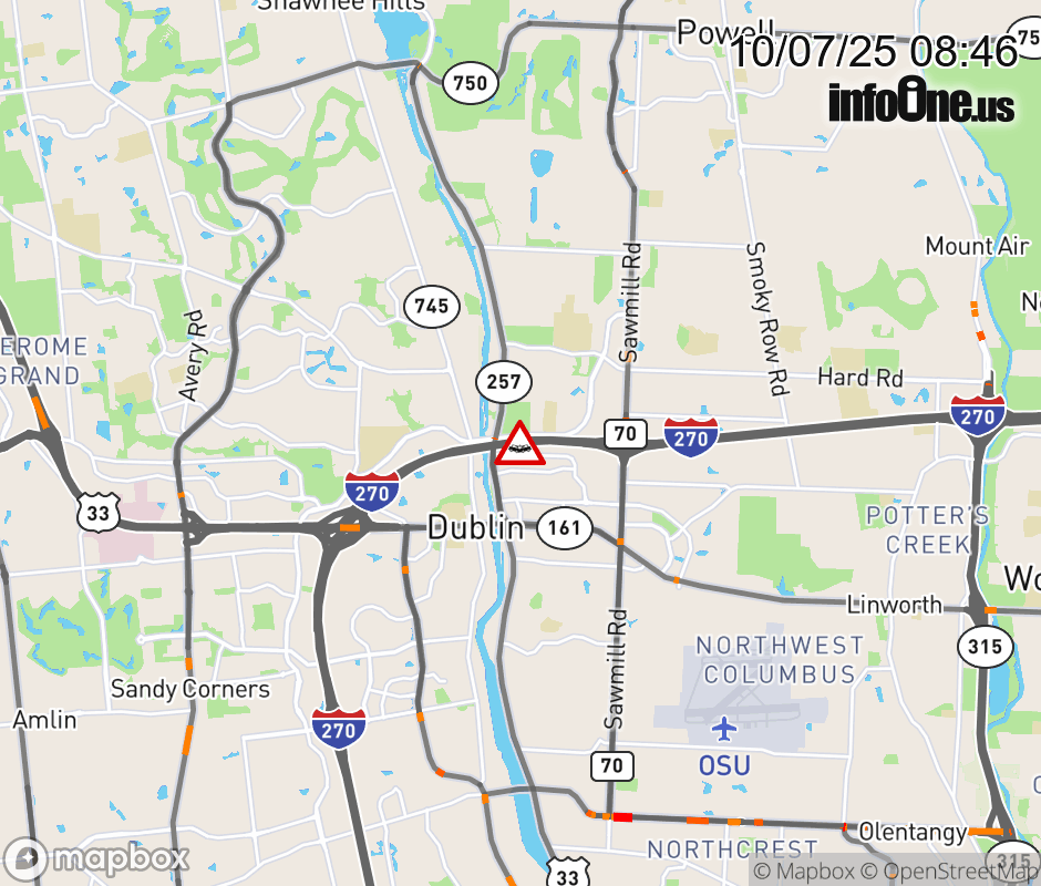 The left lane is blocked on I-270 East beyond US-33/SR-161, due to a crash. Updated: Tue 10/7/25 8:46 AM EDT ![]() |