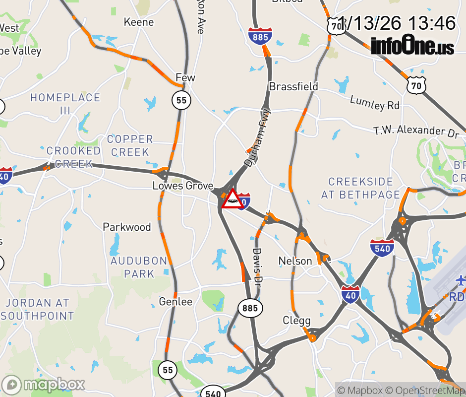 The right lane is closed at Exit 279 (I-885). ![]() |