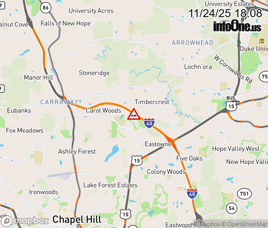 The right lane is closed 1 mile before Exit 270 (US-501). ![]() |