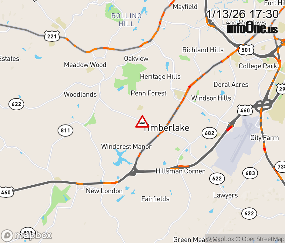 On Rt. 622 in the County of Campbell, in the vicinity of Barbour Dr; Mistletoe Dr; Rt. 1519N/S (Campbell County), motorists can expect delays due to a vehicle crash. The east through lanes are closed. ![]() |