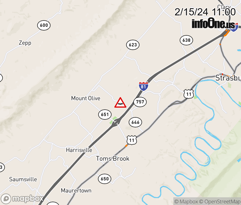 On Rt. 646 West in the County of Shenandoah, in the vicinity of Copp Rd; Mt Hebron Rd; Rt. 757N/S (Shenandoah County), motorists can expect delays due to a vehicle crash. Lane closures exist.. Updated: Thu 2/15/24 11:00 AM EST ![]() Updated: Thu 2/15/24 11:00 AM EST |