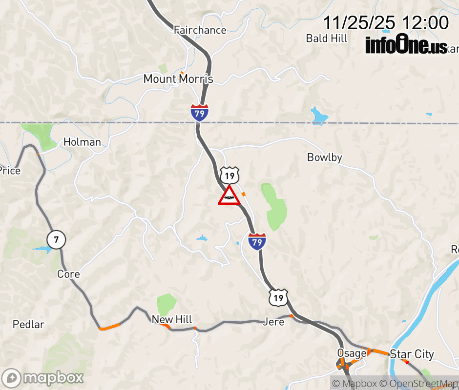 Canceled 11/25/25 1:56 PM Location: I-79 at MM 159.0, WV Accident.