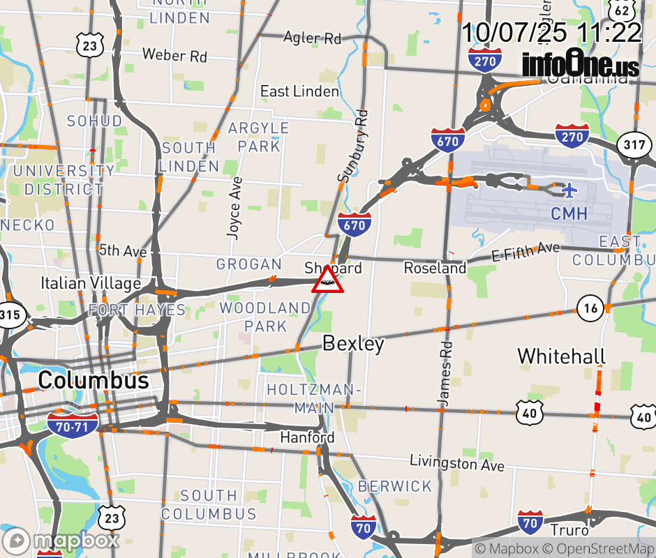 The left shoulder is blocked on I-670 West beyond US-62/Fifth Ave, due to a crash. ![]() |