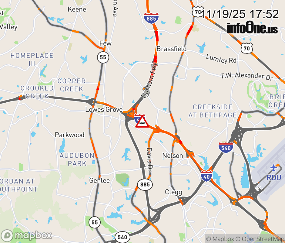 The left shoulder is closed near Exit 279 (I-885). ![]() |