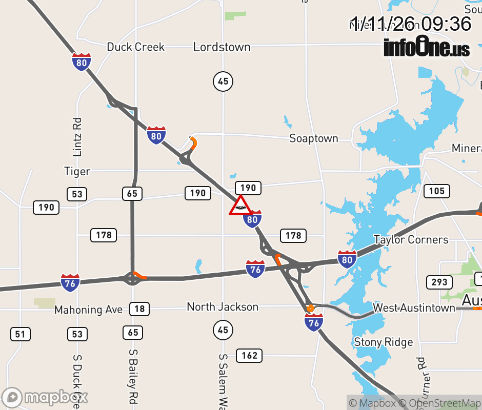 Expect lane closures on I-80 West (Ohio Turnpike) beyond I-76, due to a crash. ![]() |