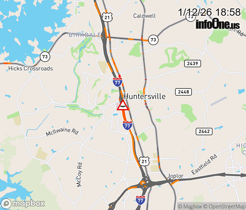 Crash on I-77 North Bound near exit 23, Gilead Rd. The left general purpose lane is blocked. ![]() |
