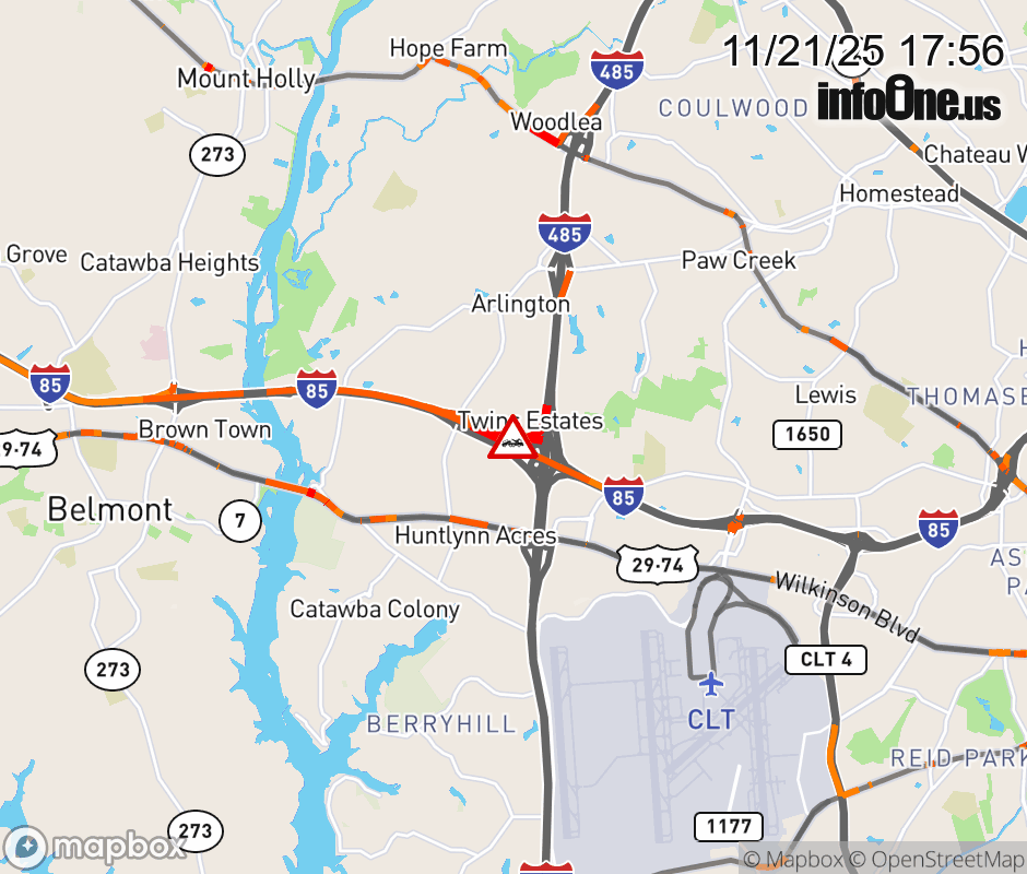 The two right ramp lanes are closed on Exit 10 B (I-85 South). ![]() |