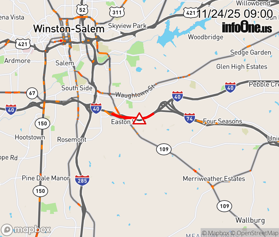 Canceled 11/24/25 9:36 AM Location: I-40E at MM 196, NC Vehicle Crash.