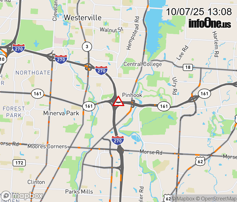 The right lane is blocked on Ramp SR-161 West to I-270 South, due to a crash. ![]() |