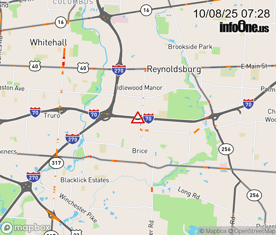 The right shoulder is blocked on I-70 West beyond Brice Rd, due to a crash. ![]() |