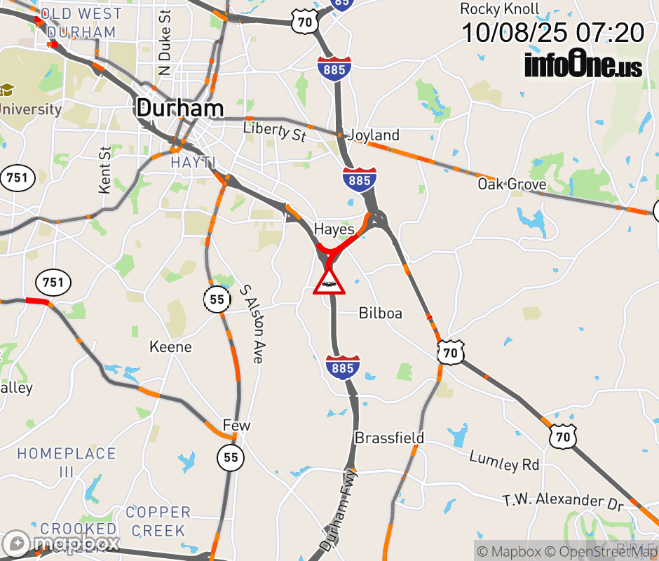 The left shoulder is closed at Exit 9 (NC 147). Updated: Wed 10/8/25 7:20 AM EDT ![]() Updated: Wed 10/8/25 7:20 AM EDT |