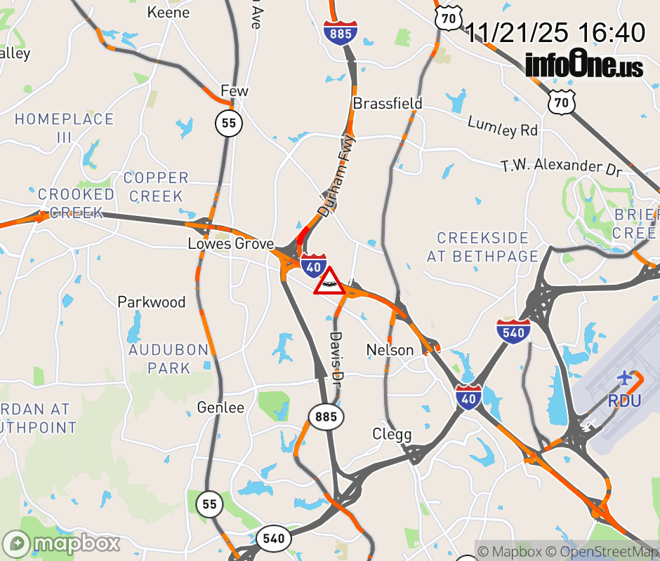 The right shoulder has reopened near Exit 280 (Davis Dr). Updated: Fri 11/21/25 4:40 PM EST ![]() Updated: Fri 11/21/25 4:40 PM EST |