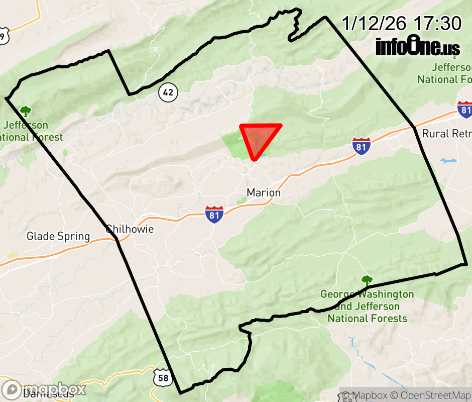 Canceled 1/12/26 5:41 PM Smyth County has 1 power outage affecting 171 customers. Appalachian Power 171 without power Marion: Customers affected: 171 (2%) Estimated repair: Mon 7:00 PM Updated: Mon 1/12/26 5:30 PM EST ![]() Updated: Mon 1/12/26 5:30 PM EST |