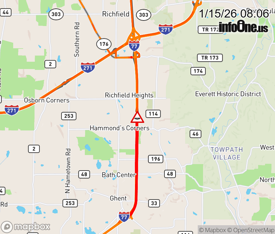 Expect lane closures on I-77 North beyond Summit County Rest Area 4-31, due to a crash. ![]() |