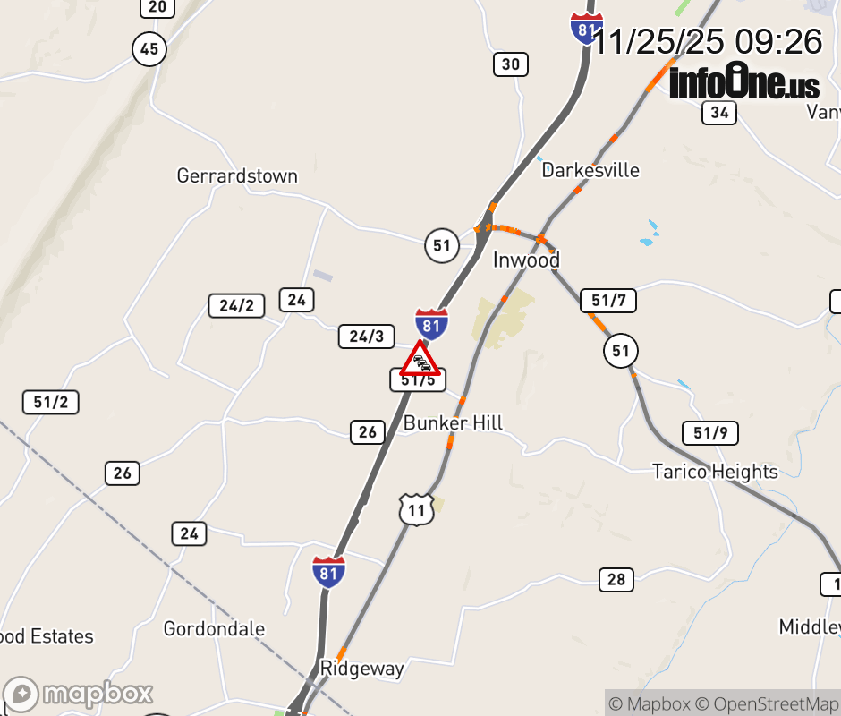 Canceled 11/25/25 11:42 AM Location: I-81 at MM 3.5, WV Fire.
