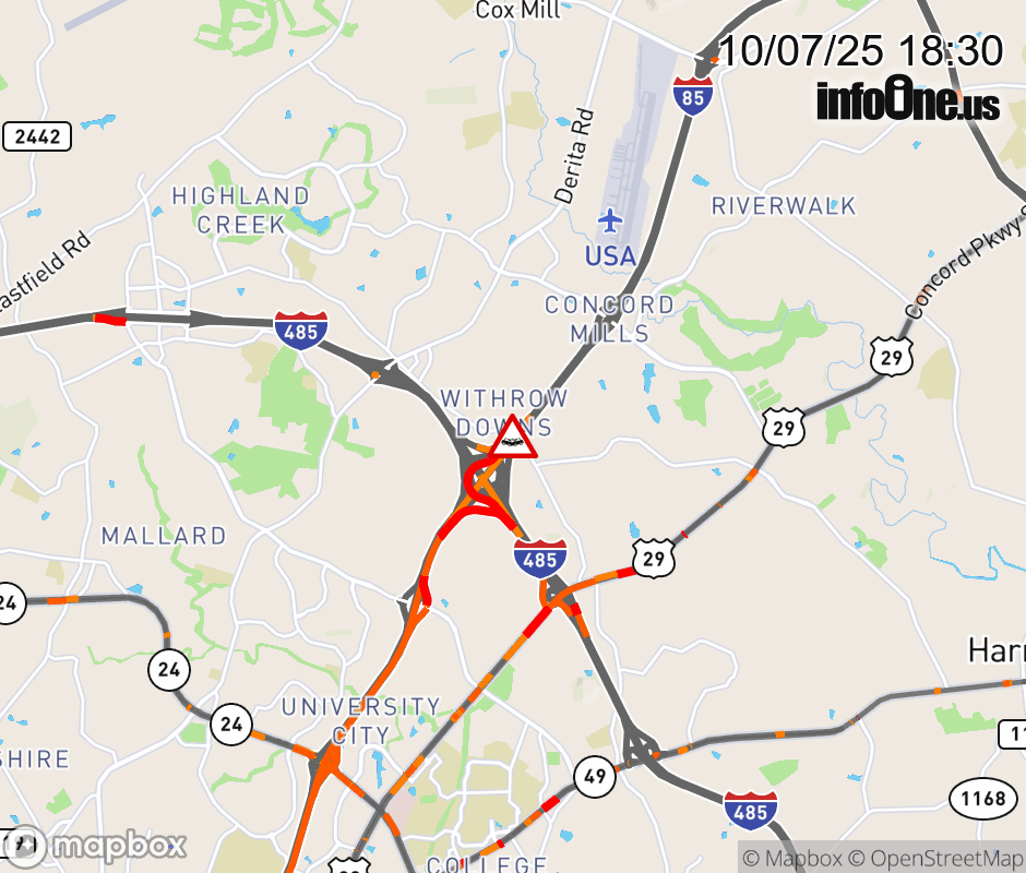 The left ramp lane is closed at Exit 48 (I-485). ![]() |