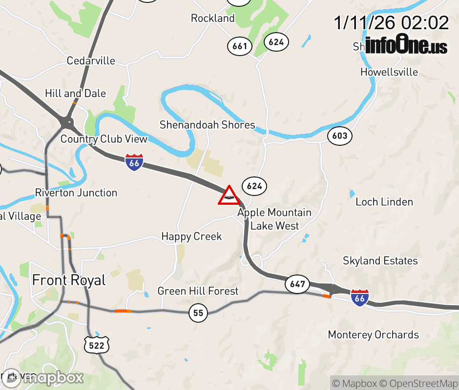 On I-66 East at mile marker 10.4 in the County of Warren, motorists can expect delays due to a vehicle crash. Updated: Sun 1/11/26 2:02 AM EST ![]() Updated: Sun 1/11/26 2:02 AM EST |