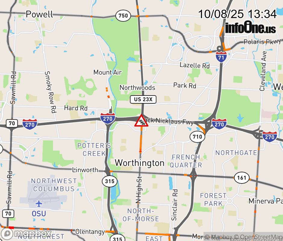 Ramp US-23 South to I-270 East CLOSED because of a police incident. Updated: Wed 10/8/25 1:34 PM EDT ![]() |