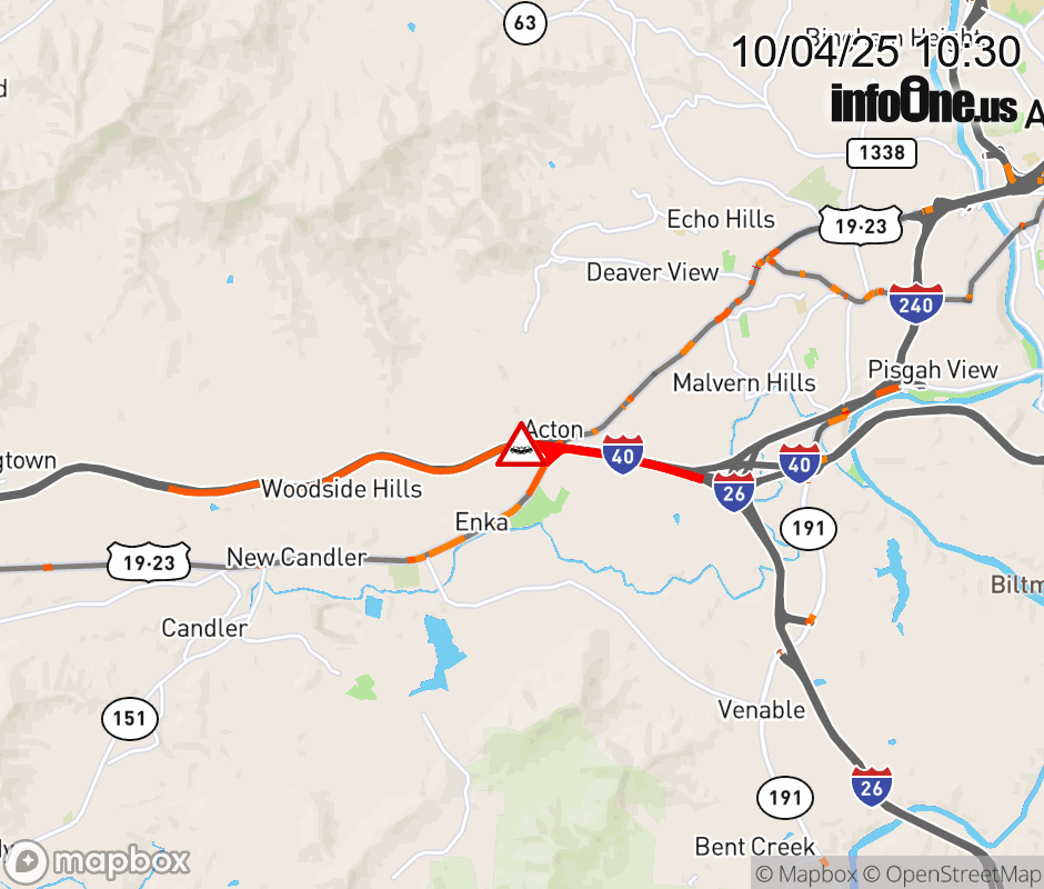The right shoulder is closed at Exit 44 ( US 23 / Smokey Park Hwy). Updated: Sat 10/4/25 10:30 AM EDT ![]() Updated: Sat 10/4/25 10:30 AM EDT |