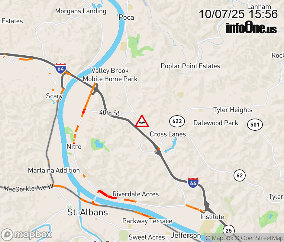 Vehicle Crash on WV-62 (Cross Lanes Drive at Burdette Lane). ![]() |