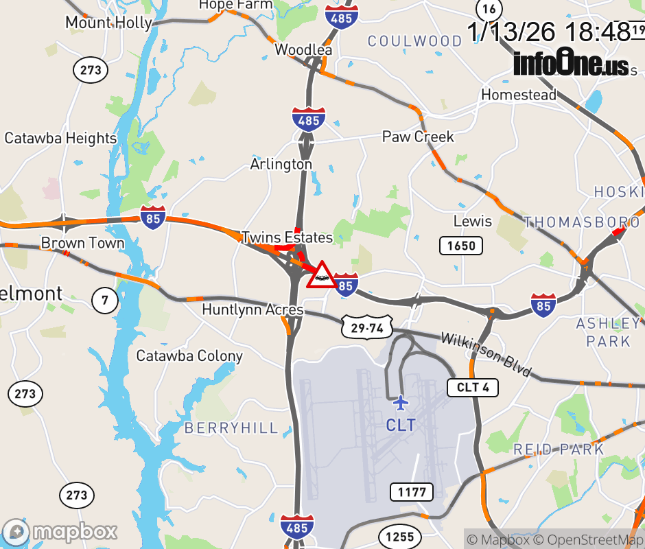 The left lane is closed at Exit 30 B (I-485). ![]() |