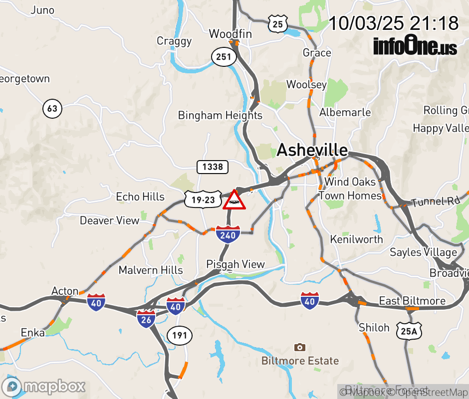 The left lane is closed near Exit 3A, US 19,23,74 ALT (Patton Avenue). ![]() |