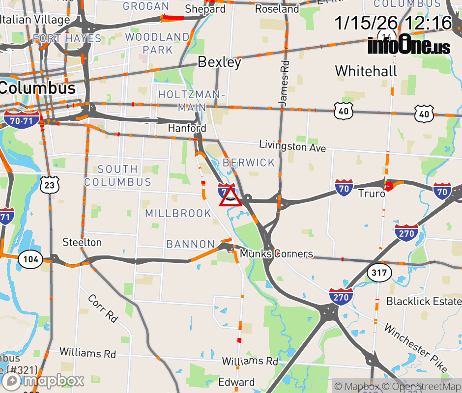 The right lane is blocked on I-70 West beyond US-33, due to a crash. ![]() |