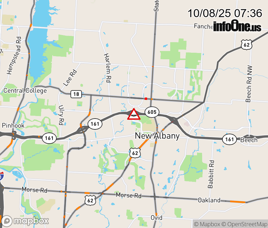 The right shoulder is blocked on SR-161 East beyond New Albany Rd, due to a crash. ![]() |