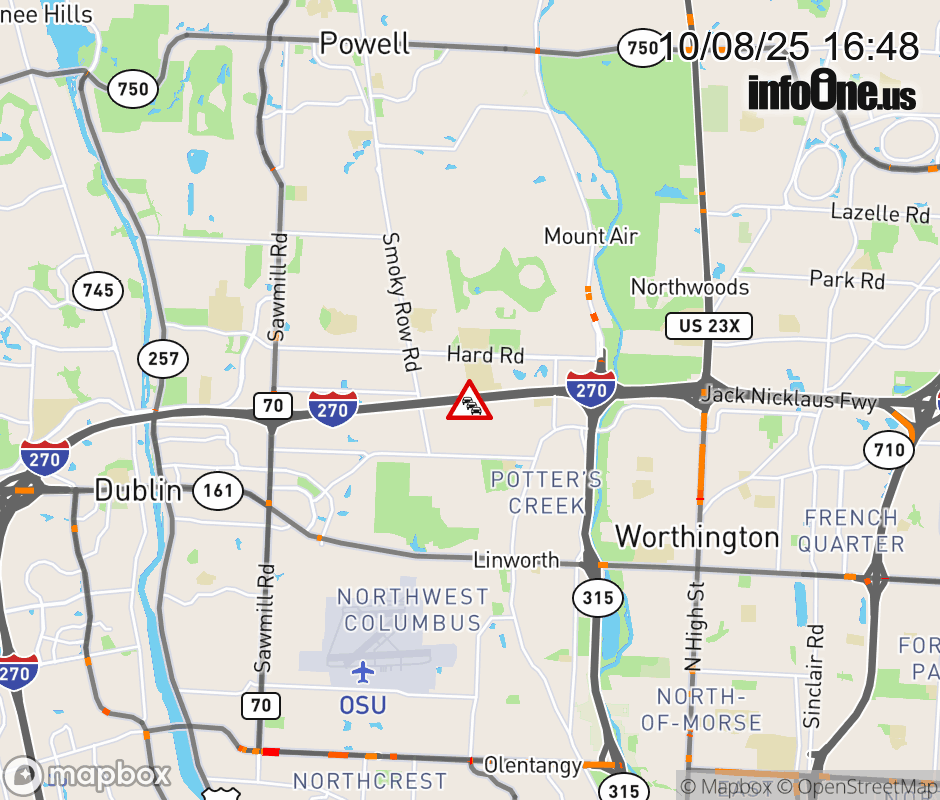 The left lane is blocked on I-270 East beyond Sawmill Rd, due to repairs/maintenance. Updated: Wed 10/8/25 4:48 PM EDT ![]() |