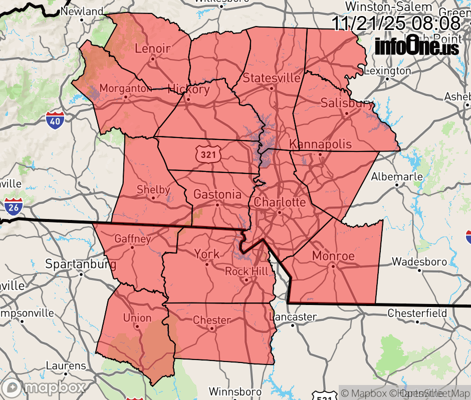 Canceled 11/21/25 10:00 AM Special Weather Statement issued November 21 at 8:07AM EST by NWS Greenville-Spartanburg SC Fog and low clouds cover much of the western North Carolina Piedmont and eastern Upstate South Carolina this morning, with visibility of one-quarter mile or less in some areas, particularly areas east of US Highway 321. If traveling across this area this morning, be prepared for poor driving conditions. Slow down and use low beam headlights if dense fog is encountered. The fog should lift in most locations by 10 AM. ![]() |