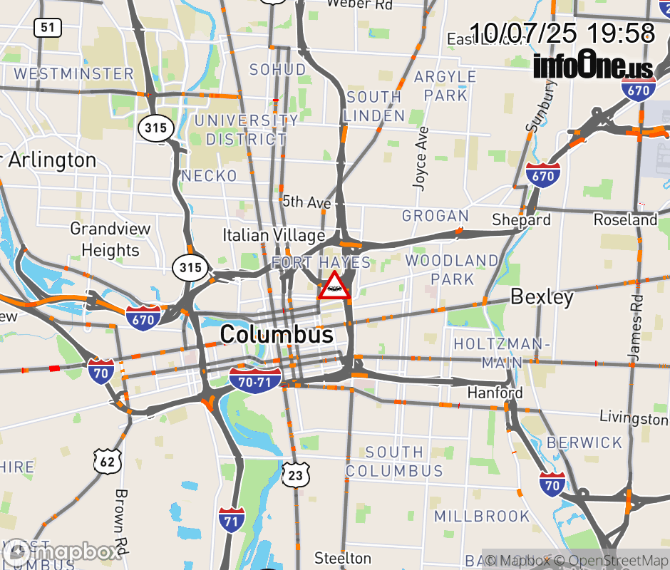 Ramp I-670 East to I-71 South CLOSED because of a crash. ![]() |