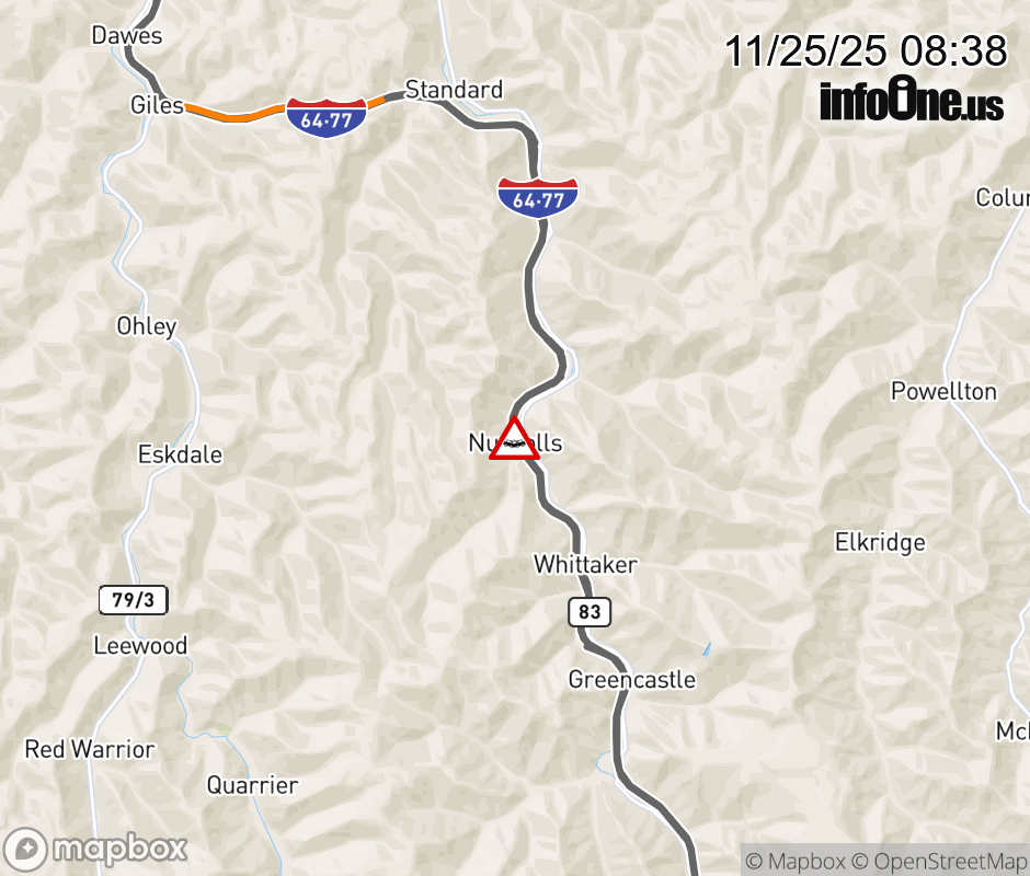 Canceled 11/25/25 10:10 AM Location: I-77 at MM 71.5, WV Accident.