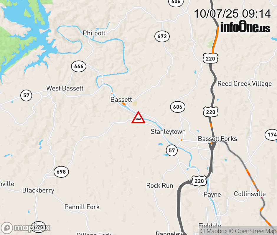 On ALT VA-57 in the County of Henry, in the vicinity of Blackberry Rd; Governor Stanley Hwy; Rt. 1228N/S (Henry County); Rt. 698N/S (Henry County), motorists can expect delays due to a vehicle crash. All west lanes are closed. Updated: Tue 10/7/25 9:14 AM EDT ![]() Updated: Tue 10/7/25 9:14 AM EDT |