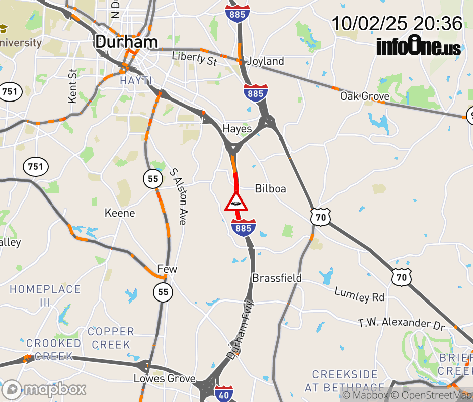 Canceled 10/2/25 8:58 PM Location: I-885S at MM 7, NC Vehicle Crash.