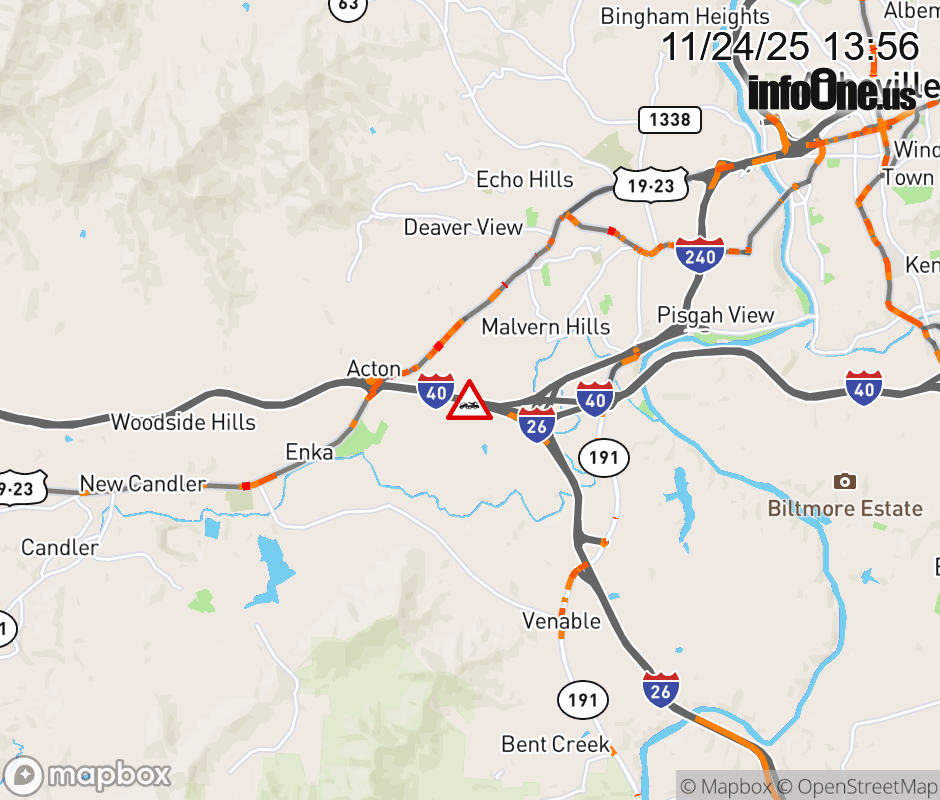 The right lane is closed after Exit 46A, I-26 ![]() |