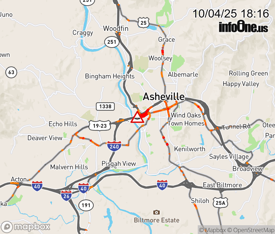 The left lane is closed at Exit 4A (I-26). ![]() |