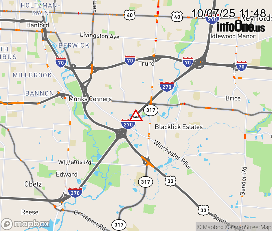 The right lane is blocked on I-270 North beyond US-33, due to a crash. ![]() |