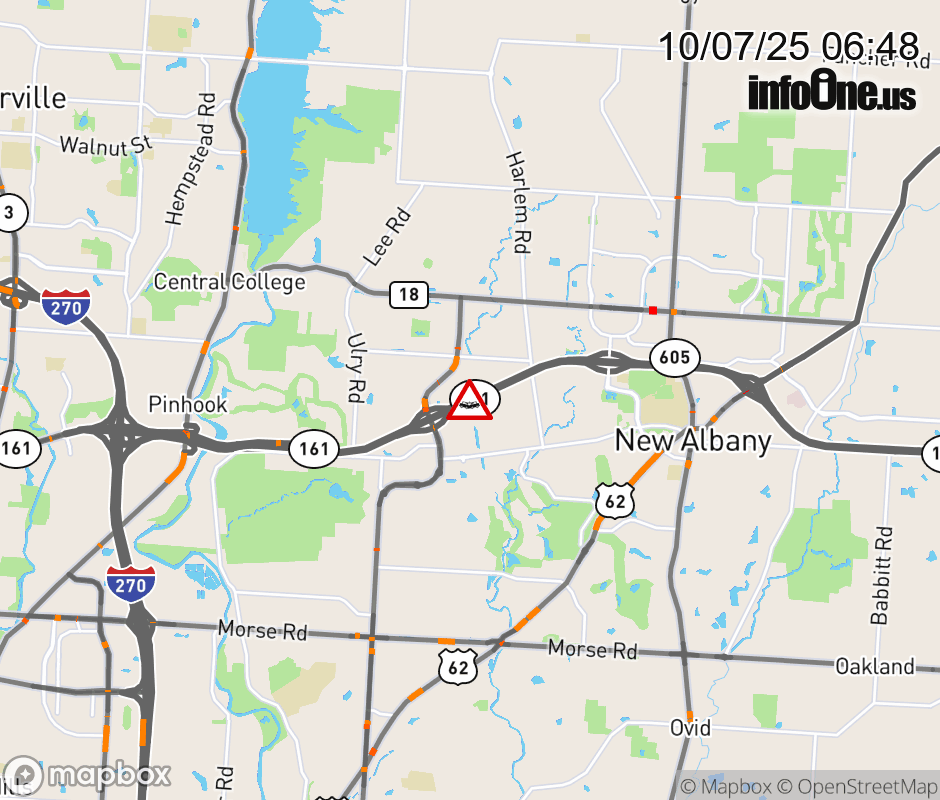 The left lane is blocked on SR-161 West at Hamilton Rd, due to a crash. ![]() |