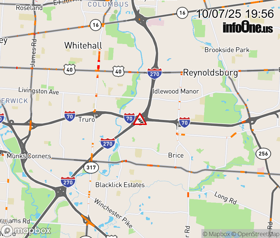 Expect lane closures on Ramp I-70 West to I-270 South, due to debris on roadway. Updated: Tue 10/7/25 7:56 PM EDT ![]() Updated: Tue 10/7/25 7:56 PM EDT |