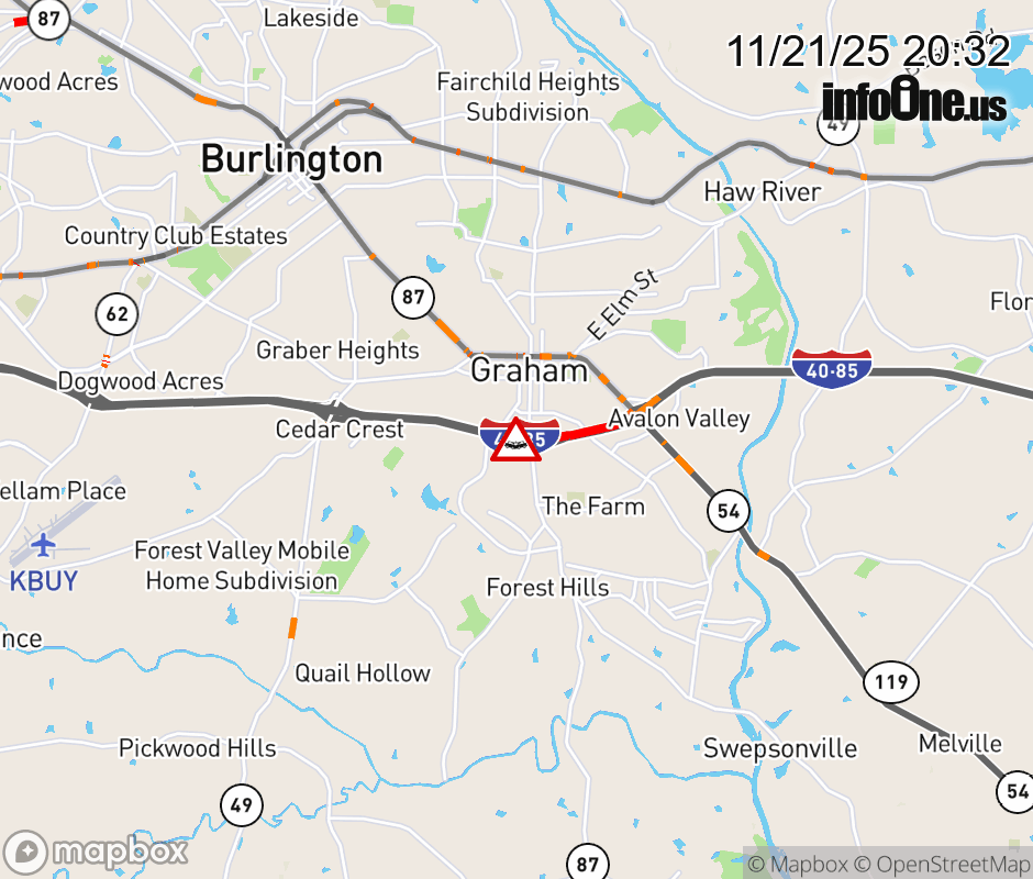 The 2 left lanes are closed past Exit 147 (NC-87). ![]() |