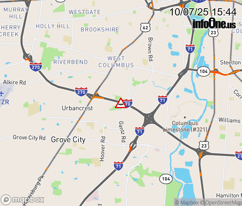 The right shoulder is blocked on I-270 East beyond US-62/SR-3, due to a crash. ![]() |
