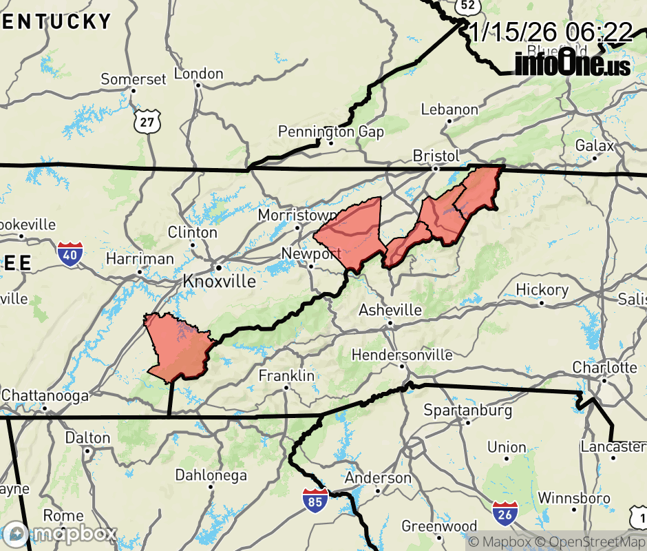 Canceled 1/15/26 11:00 AM Winter Weather Advisory issued January 15 at 6:20AM EST until January 15 at 11:00AM EST by NWS Morristown TN * WHAT... Snow. Additional snow accumulations up to one inch. Winds gusting as high as 40 mph. * WHERE... Johnson, Southeast Carter, Southeast Greene, Southeast Monroe, and Unicoi Counties. * WHEN... Until 11 AM EST this morning. * IMPACTS... Roads, and especially bridges and overpasses, will likely become slick and hazardous. Plan on slippery road conditions. The hazardous conditions could impact the Thursday morning commute. * ADDITIONAL DETAILS... Severe cold temperatures early this morning in higher elevations. Bundle up for cold weather! ![]() |